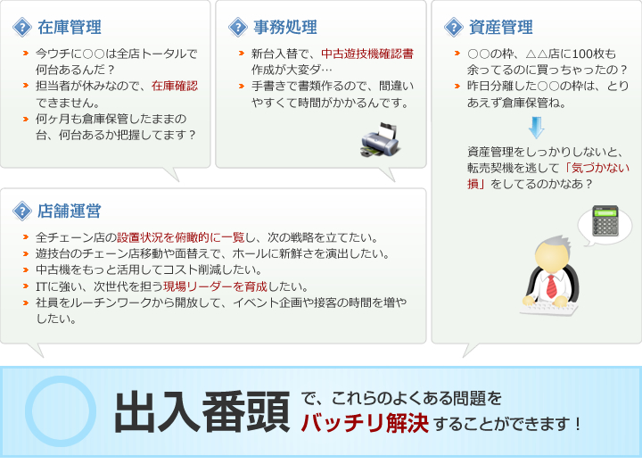 近年、パチンコ台・パチスロ台の入れ替わる周期が短くなっており、それに伴い遊技機の管理も非常に難しいものになってきました。